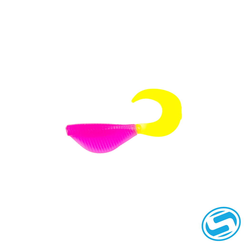 The Curly Clobber is the perfect bait fish imitator. The fatter/taller body to represent more of a bluegill and shad-based forage but making the belly thin to collapse for better hook ups. The unique design of this curly tail soft plastic offers a belly fin that has subtle movement. Even more importantly, the taller profile helps ping off forward facing sonar with more surface area than smaller minnow-based shapes.